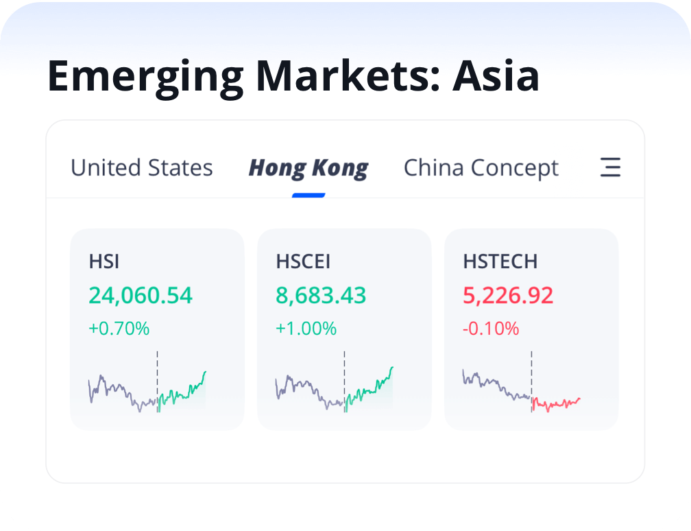 Webull UK grants seamless access to the Hong Kong and China stock markets, empowering investors to diversify geographically and explore high-growth sectors. With tools such as real-time quotes, competitive pricing, and China Connect, investors can confidently engage with the technology, manufacturing, and energy markets whilst tapping into Asia's dynamic economy.